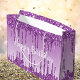 A gift bag for a girly and glamorous 21st (or any age) birthday. A purple gradient background with deep purple faux glitter drips, paint dripping look. White hand lettered style script and the text: Happy Birthday.