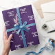 Elegant, classic, trendy party wrapping paper. A deep purple background, white text. The purple color is uneven.