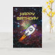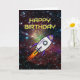 Birthday purple rocket custom name and age card