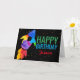 Birthday Rainbow Watercolor Rocket Outer Space Card