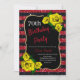 Birthday Red Black Stripes Glitter Yellow Roses Invitation