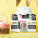 Transform your birthday gift with this stylish personalized wrapping paper! A seamless, geometric pattern with retro cubes framing two of your favorite photos. This editable template can be personalized further with the recipient's name and celebrated age. Colors: pink, green, black and off-white.