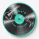 Vintage Black Vinyl 33 1/3 record album on a turquoise background with music notes and guitar paper plates. Perfect for anyone who grew up in the 60's. Change age to suit.