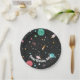 Rocket ships, comets and planets in black outer space for child's birthday.