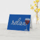 red wine in stemware glass with word RELAX in rope design on blue for birthday.