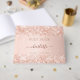 A rose gold ombre background with confetti. Personalize and add your name and a text on the front. Add your text on the spine. The name is written with a modern hand lettered style script with swashes.