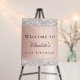 A welcome board for a girly and glamorous 21st (or any age) birthday party. A rose gold gradient background decorated with faux silver sparkles. Personalize and add a name and age 21.