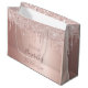 A gift bag for a girly and glamorous 21st (or any age) birthday. A rose gold background, drips, paint drip look. The text: The name is written in dark rose gold with a modern hand lettered style script. Tempate for a date and age 21.
