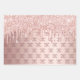 Elegant, classic, glamorous and feminine style party wrapping sheets. A girly pink, rose gold gradient background decorated with rose gold drips, paint dripping look. Personalize and add a name and age. A modern hand lettered style script.