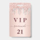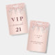 A modern, stylish and glamorous badge for a 21st (or any age) birthday party. A rose gold background with an elegant rose gold and silver drip, paint dripping look. The name is written with a modern dark rose gold colored hand lettered style script with swashes. With the text: VIP Number 21 is written in a golden color. To keep the swashes only delete the sample name, leave the spaces or emoji's in front and after the name.