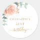 Birthday rose gold floral eucalyptus greenery classic round sticker