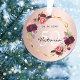 An ornament for a girly and glamorous 50th (or any age) birthday. A rose gold gradient background. A faux gold geometric frame and watercolored flowers, florals in burgundy, pink and rose gold. Personalize and add a date, name and age 50. The text: The name is written in dark rose gold with a modern hand lettered style script. Perfect as party decoration, favor, keepsake or as a gift.