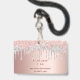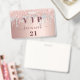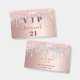 A modern, stylish and glamorous badge for a 21st (or any age) birthday party. A faux rose gold metallic looking background with an elegant rose gold and faux silver glitter drip, paint dripping look. The name is written with a modern dark rose gold colored hand lettered style script with swashes. With the text: VIP Number 21 is written in a golden color. To keep the swashes only delete the sample name, leave the spaces or emoji's in front and after the name.