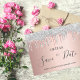A girly and trendy Save the Date card for a 50th (or any age) birthday party. A feminine pink, rose gold faux metallic looking background decorated with faux rose gold and silver glitter drips. Personalize and add a date and name/age 50. Dark gray colored letters. The text: Save the Date is written with a large trendy hand lettered style script.