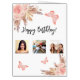Birthday rose gold pampas butterfly photo white card
