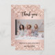 A birthday Thank You photo card. A rose gold background decorated with faux glitter, sparkles. Personalize and add your photo and thank you note.