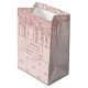 Elegant, and glamorous for a 21st (or any age) birthday. A rose gold background, decorated with rose gold drips, paint dripping look. Personalize and add the monogram's initials. Add a name, age 21 and a date. Dark rose gold text. Can be used both as a gift bag for the birthday girl or as a party favor bag.