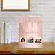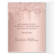 A card for a girly and glamorous 21st (or any age) birthday. A rose gold background with rose gold drips, paint drip look. The text: The name is written in dark rose gold with a large modern hand lettered style script. Template for name, age 21 and a date. Personalize and add your own text inside and a vertical photo of the birthday girl. Back: 3 square photos.