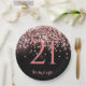 Birthday rose gold pink glitter glam 21st paper plates