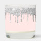 A blush, rose gold background. Decorated with faux silver glitter drips, paint dripping look. Personalize and add your name and a date. Black text.
