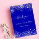 A 18th (or any age) birthday thank you card. A royal blue background color. Decorated with faux silver glitter, sparkles. On front large white hand lettered script and the text: Thank You.