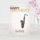 Birthday card is very nice and an excellent card for those who enjoy playing the saxophone. I like that I can customize the recipient's name and place a personalized message inside. Paper quality is very good. I will order additional cards from Zazzle.com. Printing is clear with no smudges. Colors are very nice.