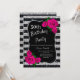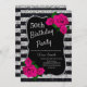Birthday Silver Black Stripes Glitter Pink Roses Invitation