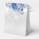 Elegant, birthday party favors. A stylish faux silver background with blue flowers, florals and faux silver glitter, sparkles. Personalize and add a name and a date.