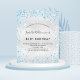 For an elegant 40th (or any age) birthday. A faux silver metallic looking background. Decorated with blue faux glitter dust. Personalize and add a name, age and party details. The name is written with a hand lettered style script