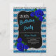 Birthday Silver Blue Stripe Glitter Deep Blue Rose Invitation