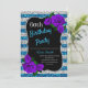 Birthday Silver Blue Stripes Glitter Purple Roses Invitation