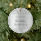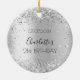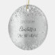 An ornament for a girly and glamorous 21st (or any age) birthday . A faux silver looking background with confetti. Personalize and add a date, a name and age.