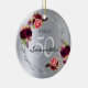 Trendy bohemian boho style. Decorated with watercolored roses in burgundy and pink. Glamorous, shiny faux silver metallic looking background on both front and back. A faux silver geometric frame. Perfect both as a birthday gift, keepsake or as party birthday party decoration. Perfect for a winter birthday!