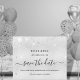 Birthday silver glitter dust budget save the date flyer