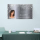 A banner for a girly and glamorous 21st (or any age) birthday party. A modern faux silver metallic looking background with faux glitter dust. Personalize and add your own vertical photo of the birthday girl. The name is written in a modern hand lettered style script. White letters.