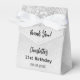 An elegant and glamorous birthday, any age. Faux silver looking background with faux glitter, sparkles. With the text: Thank You! Personalize and add your name age and a date. Black letters. The name is written with a trendy hand lettered style script.
