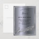 A trendy, modern 50th birthday party invitation. A faux silver metallic looking background, with a frame and music notes, black colored letters. Personalize and add a name and party information.