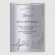 A trendy, modern 50th birthday party magnet invitation card, and it will also serve as a Save the Date reminder for your guests. A faux silver metallic looking background, with a frame and music notes, black colored letters. Personalize and add a name and party information.