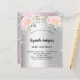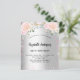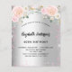 A modern, stylish and glamorous 40th (or any age) birthday party invitation. A faux silver metallic looking background with pink faux glitter, sparkles, and blush pink florals. The name is written with a modern hand lettered style script. Personalize and add your details.