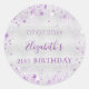 For an elegant 21st (or any age) birthday. A faux silver metallic looking background. Decorated with purple faux glitter dust. Personalize and add a date, name and age 21.