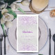 For a girly and glamorous 21st (or any age) birthday party. A silver faux metallic looking background with purple faux glitter drops. The text: The name is written in purple modern hand lettered style script. Personalize and add a name, age 21 and a date.