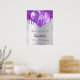 A welcome poster for a girly and glamorous 21st (or any age) birthday party. A faux silver background decorated with purple colored faux glitter drips, paint dripping look, balloons. Personalize and add a name and age.