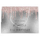 A gift bag for a girly and glamorous 21st (or any age) birthday. A faux silver metallic looking background with blush pink, rose gold faux glitter drips, paint dripping look. Personalize and add a date, name and age 21. The text: The name is written in black with a modern hand lettered style script.