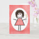 Birthday Stick Figure Girl On Red Gingham Card