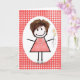 Birthday Stick Figure Girl On Red Gingham Card