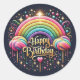 Birthday sticker-glittre rainbow classic round sticker