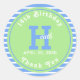 Modern pastel Birthday Stripes Blue ⎮White Green Classic Round Sticker perfect for his party.