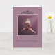 A ballerina leaps through the air in a jete move on this Swedish language ballet-themed birthday card. This feminine card is in shades of red, lavender, and raspberry. The customer can change the inside of the card to suit their needs.
