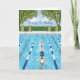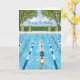 This is a birthday card with a female swimming laps in an outdoor pool with lounge chairs on the pool deck and the text, ‘Happy Birthday.’