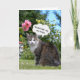 tabby cat on grass with flowers and bubble thought frame for general birthday